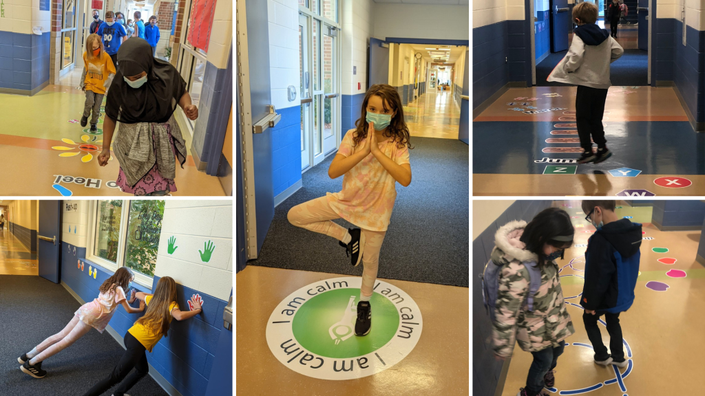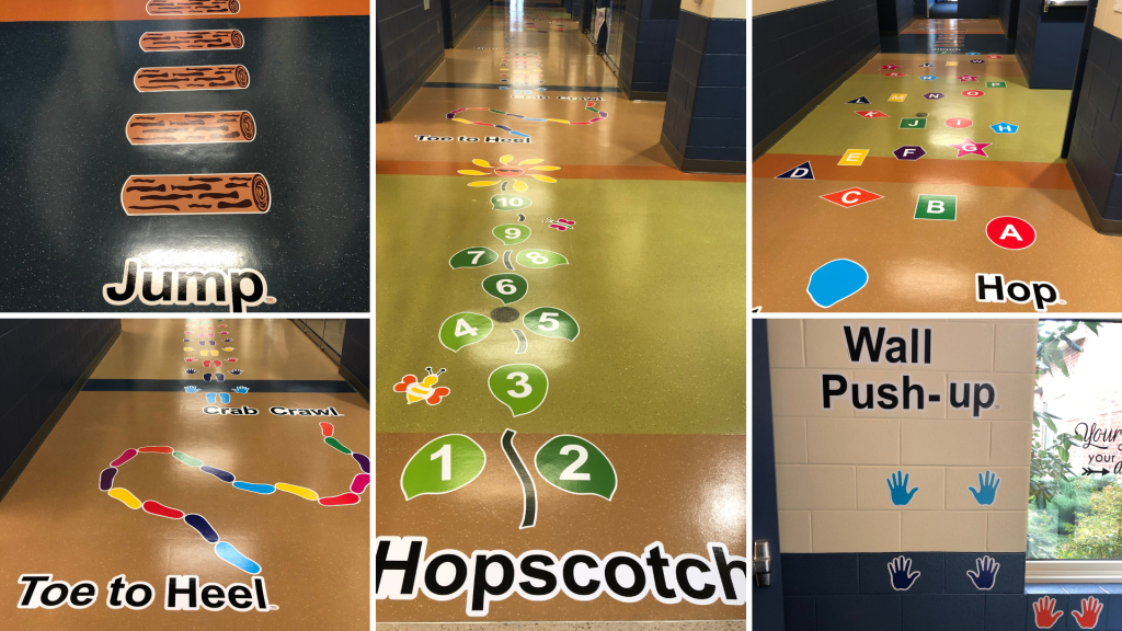 Thanks to a grant provided by the South-Western City Schools Educational Foundation, a new sensory pathway was installed at Richard Avenue Elementary School. Located in the main hallway of the building, the location of the pathway makes it accessible to all students who walk through the building on a daily basis. The path weaves students through various energy-stimulating activities such as jumping, hopping, and crab crawling. The pathway also provides the backdrop for calming activities such as wall pushes and a breathing pose as students navigate the path’s many obstacles.