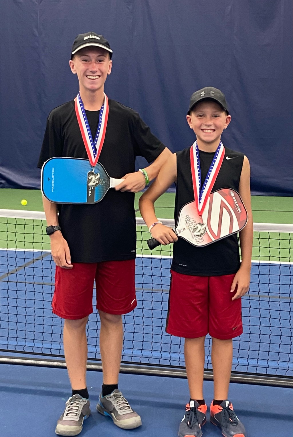 Initially, to get better at the sport, the brothers practiced frequently at home by drawing a chalk-lined court in their driveway for months on end while they learned the game, but now they are out playing at local Central Ohio Pickleball courts four-five days a week. Clearly, the extra practice and hard work continue to pay off, as the boys won gold in the Cincinnati Open, playing in the Amateur Mens Doubles division this month.