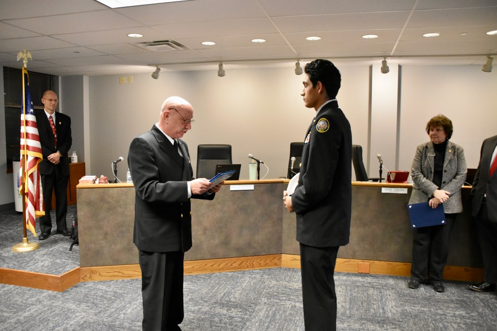 “I would like to thank the Grove City Police Department and Explorers for teaching me CPR over the summer,” Cadet Falcon said after accepting his award at the Board Meeting. “Without them, I would’ve been another bystander standing behind the counter unable to do anything.”