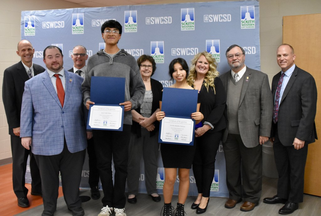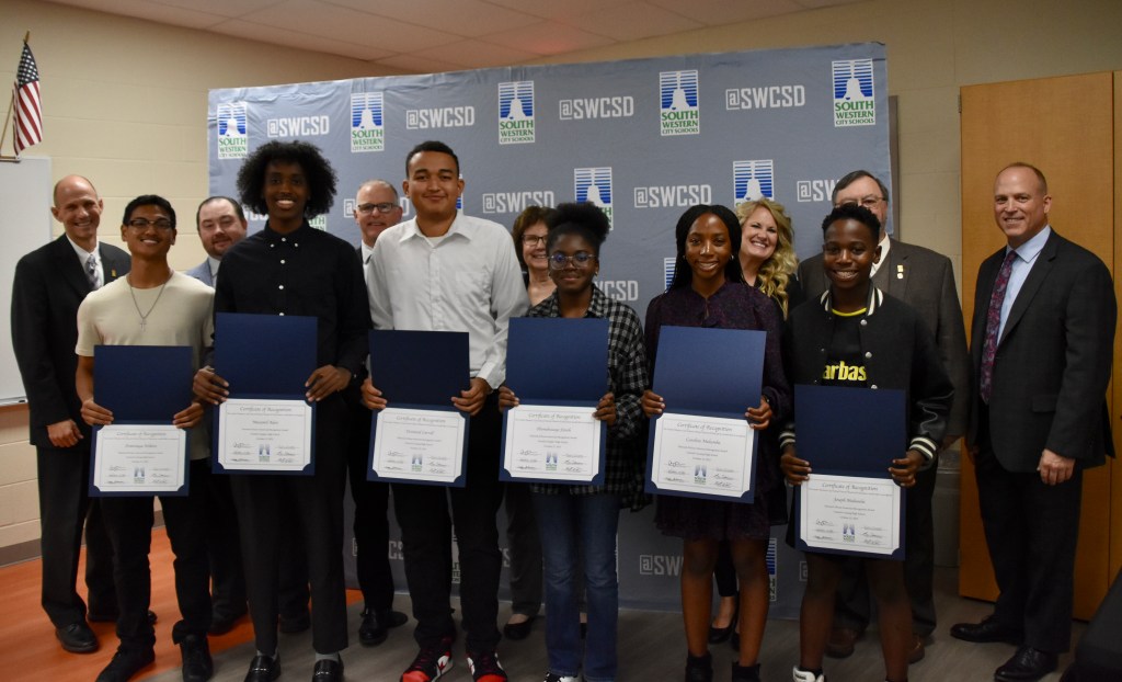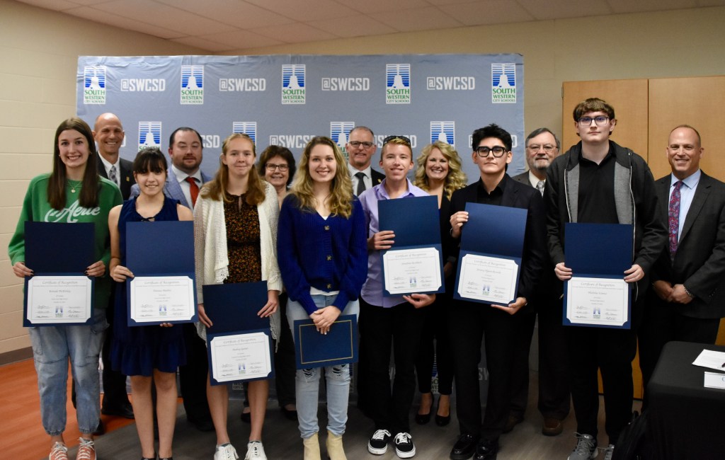During the Monday, October 23, 2023 regular meeting of the South-Western City School District Board of Education, 95 students were recognized for their exemplary academic achievement as the result of their work on Advanced Placement (AP) assessments, the PSAT/National Merit Scholarship qualifying test, and/or College Credit Plus/Associate’s Degree achievement from the 2022-2023 school year.