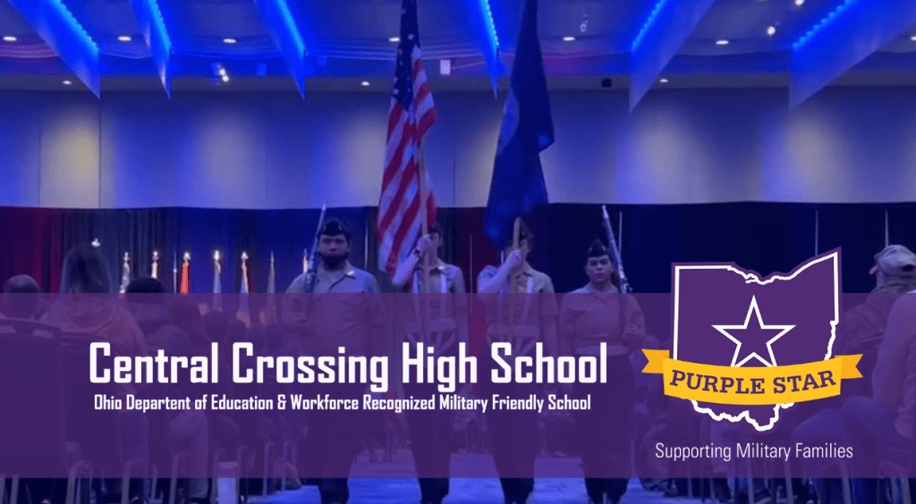 Central Crossing High School – This week, Central Crossing High School (CCHS) was named the recipient of the prestigious Purple Star School designation. The Purple Star designation, from the Ohio Department of Education and Workforce (ODEW), recognizes schools that show a major commitment to students and families connected to our nation’s military.