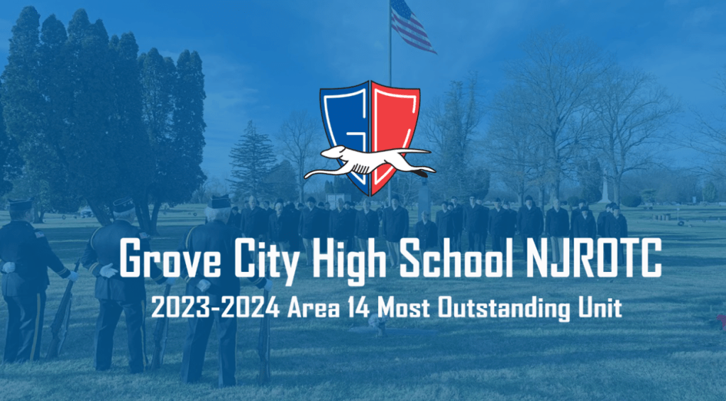 On May 1, 2024, the Grove City High School (GCHS) Navy Junior Reserve Officer Training Corps (NJROTC) was designated as the Most Outstanding Unit of Area 14 for the 2023-2024 school year. Area 14 comprises 26 NJROTC units within the region (encompassing programming in Indiana, Kentucky, Michigan, Ohio, and West Virginia) and is one of 23 Areas overall across the country representing 614 individual units.