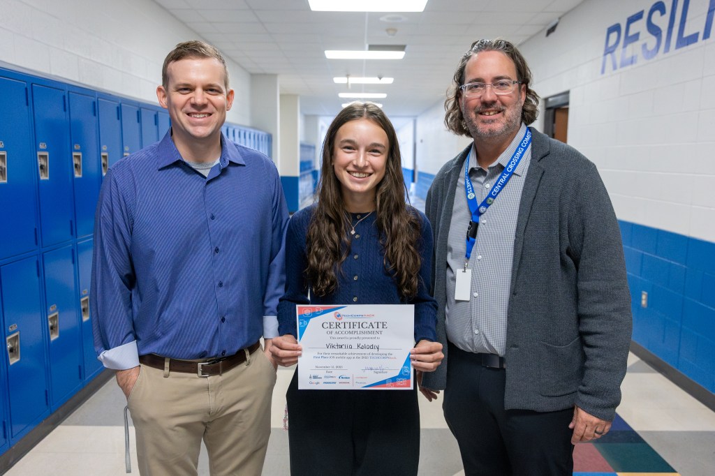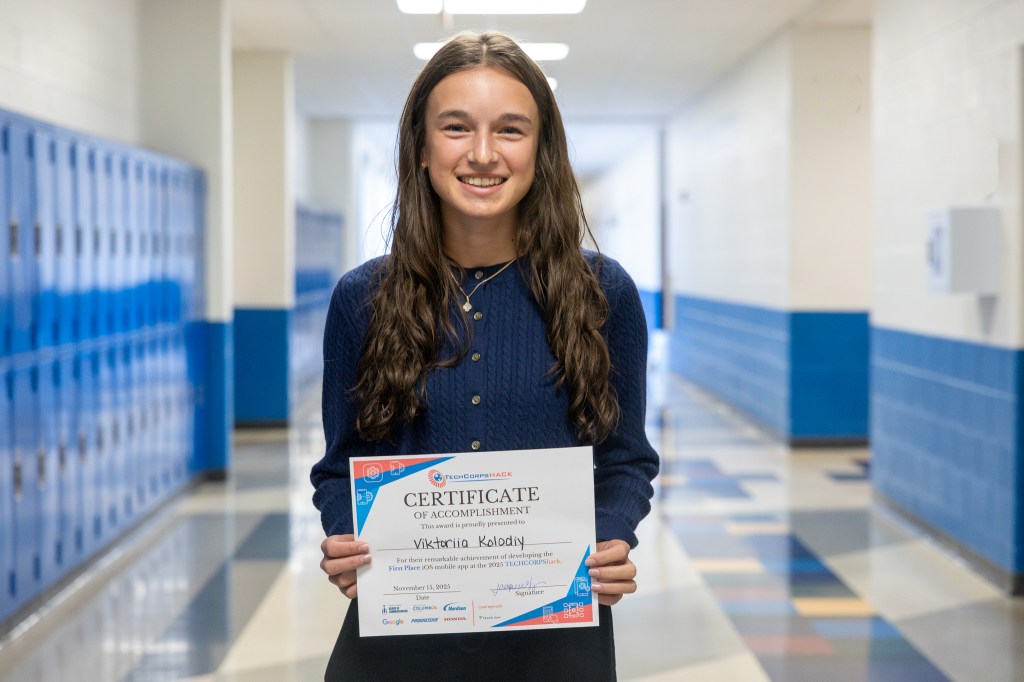 Congratulations to Central Crossing High School sophomore Viktoriia Kolodiy, who earned top recognition in the 2025 TECH CORPS Hackathon, a statewide mobile app development challenge engaging nearly 300 high school students across Ohio. The Hackathons took place in Cleveland and Elyria on November 8, and in Columbus on November 15.