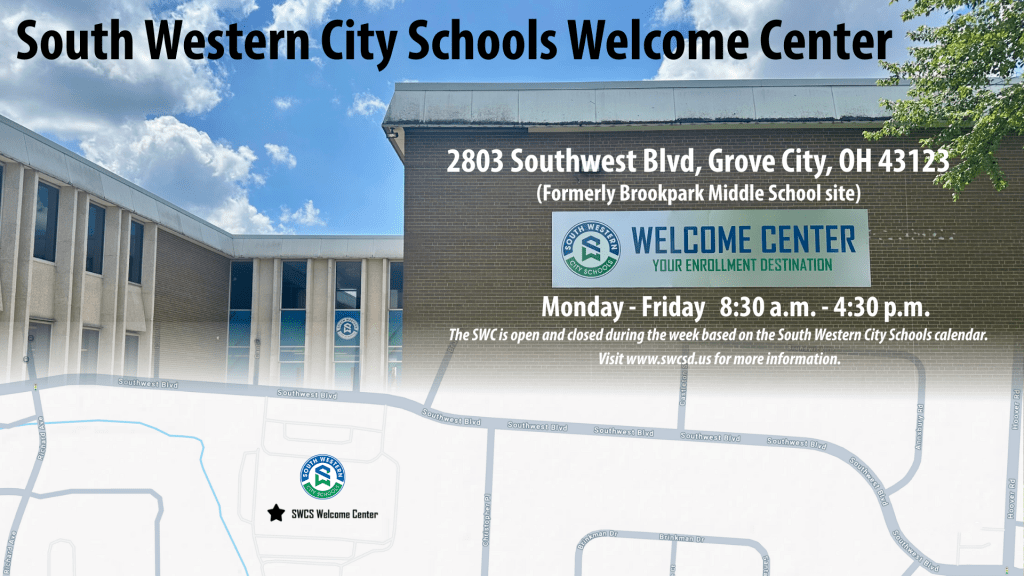 Over the summer of 2025, the enrollment team moved into the Student Welcome Center at: 2803 Southwest Blvd, Grove City, OH 43123 (Formerly Brookpark Middle School site).